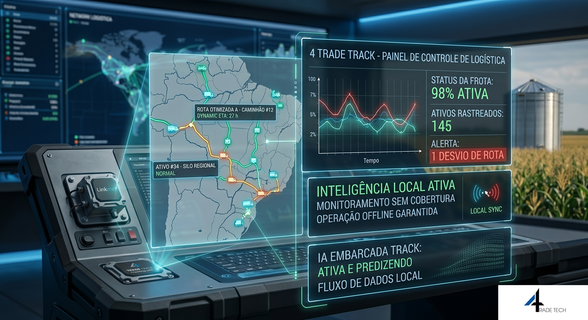 Plataforma de monitoramento de ativos que garante controle total da carga, operando com inteligência local, mesmo em áreas sem cobertura de internet.