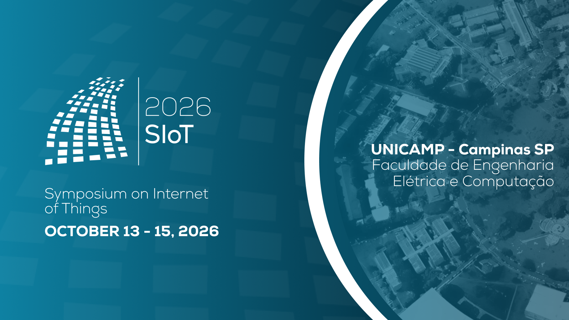 O SIoT 2026 será realizado de 13 a 15 de outubro de 2026, na Faculdade de Engenharia Elétrica e de Computação (FEEC), da Universidade Estadual de Campinas (Unicamp), Brasil. O simpósio destacará os avanços recentes em pesquisa na área de Internet das Coisas (IoT) e áreas relacionadas, reunindo pesquisadores, profissionais e estudantes para compartilhar ideias, resultados e perspectivas.